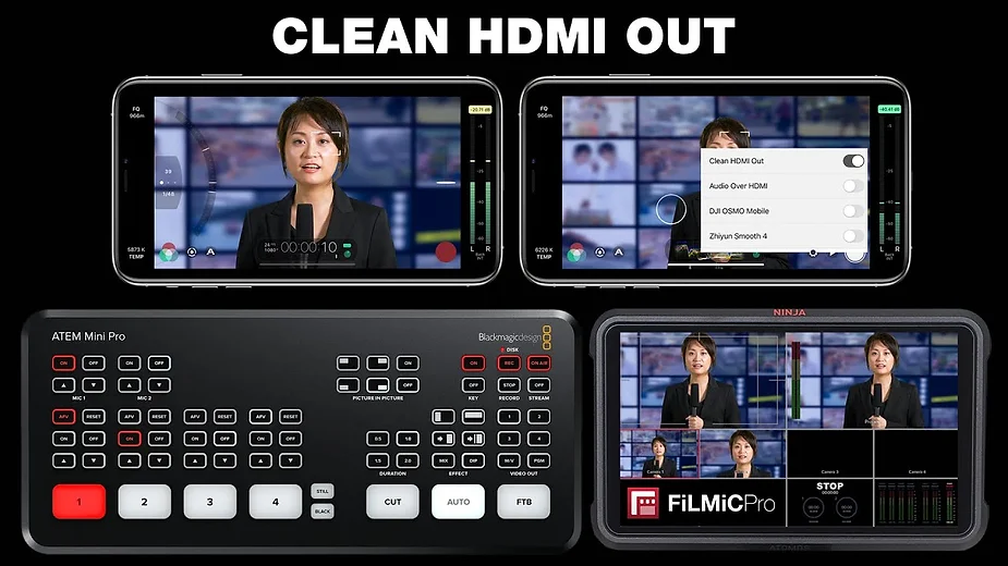 A clean HDMI out is the ability to be able to send a live signal from your phone through a HDMI cable to an external monitor. The reason for the word CLEAN is that this live signal does not contain any of the typical data that would appear on your phones viewfinder such as your recording status, exposure, focus, sound and recording time ETC.