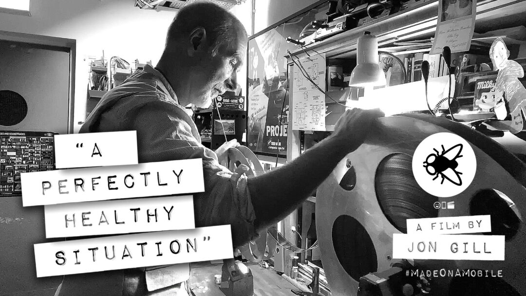 A film about a film made on a mobile. 35mm celluloid – a thing of the past or something to be treasured..? “Digital startles you… 35mm slightly hypnotises you…”