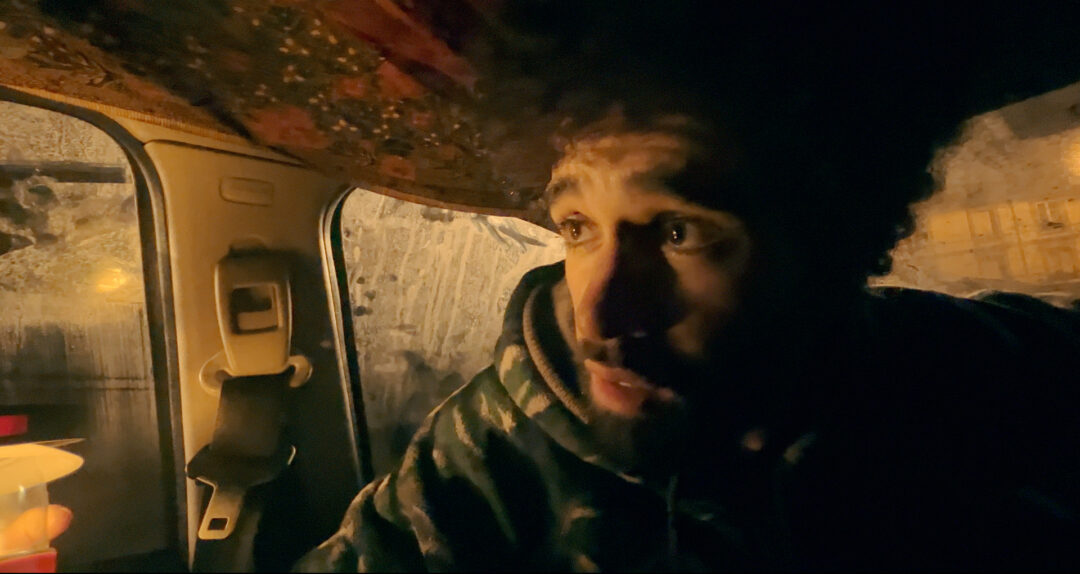 A man on the run seeks refuge in the car of a displaced old woman. Short drama shot on an iPhone 13.